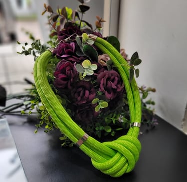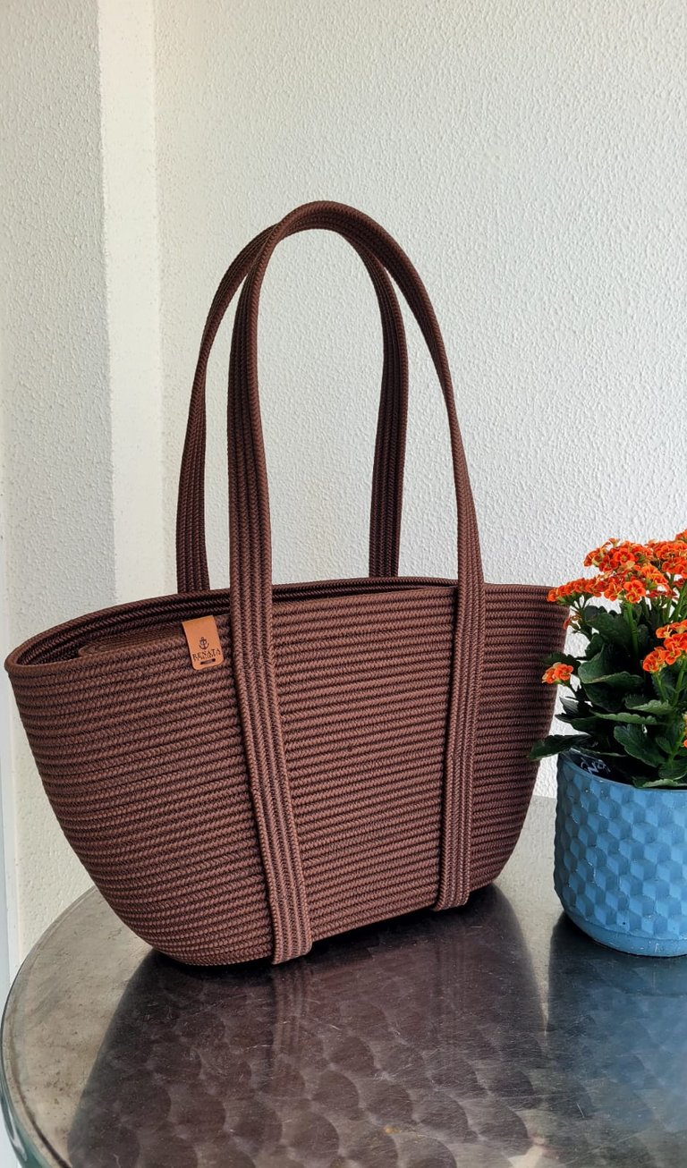 Cada peça é feita à mão com corda de algodão e náutica, unindo beleza, durabilidade e carinho em detalhes únicos.